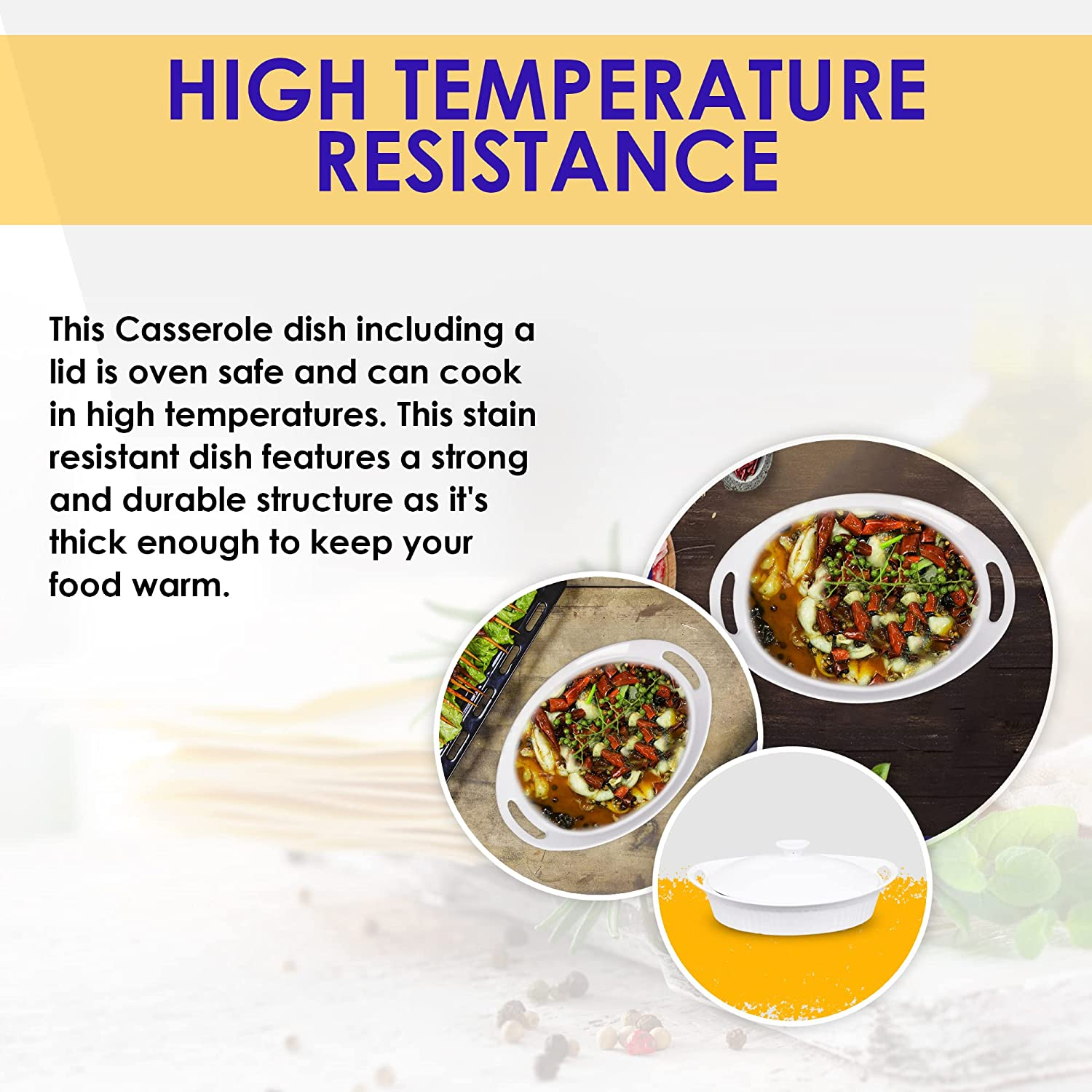 🍲[HIGH TEMPERATURE RESISTANCE] This casserole dish with oven safe lid is cast in high temperatures during processing, featuring a strong and durable structure. It’s thick enough to keep your food warm, resist staining, chipping, and cracking